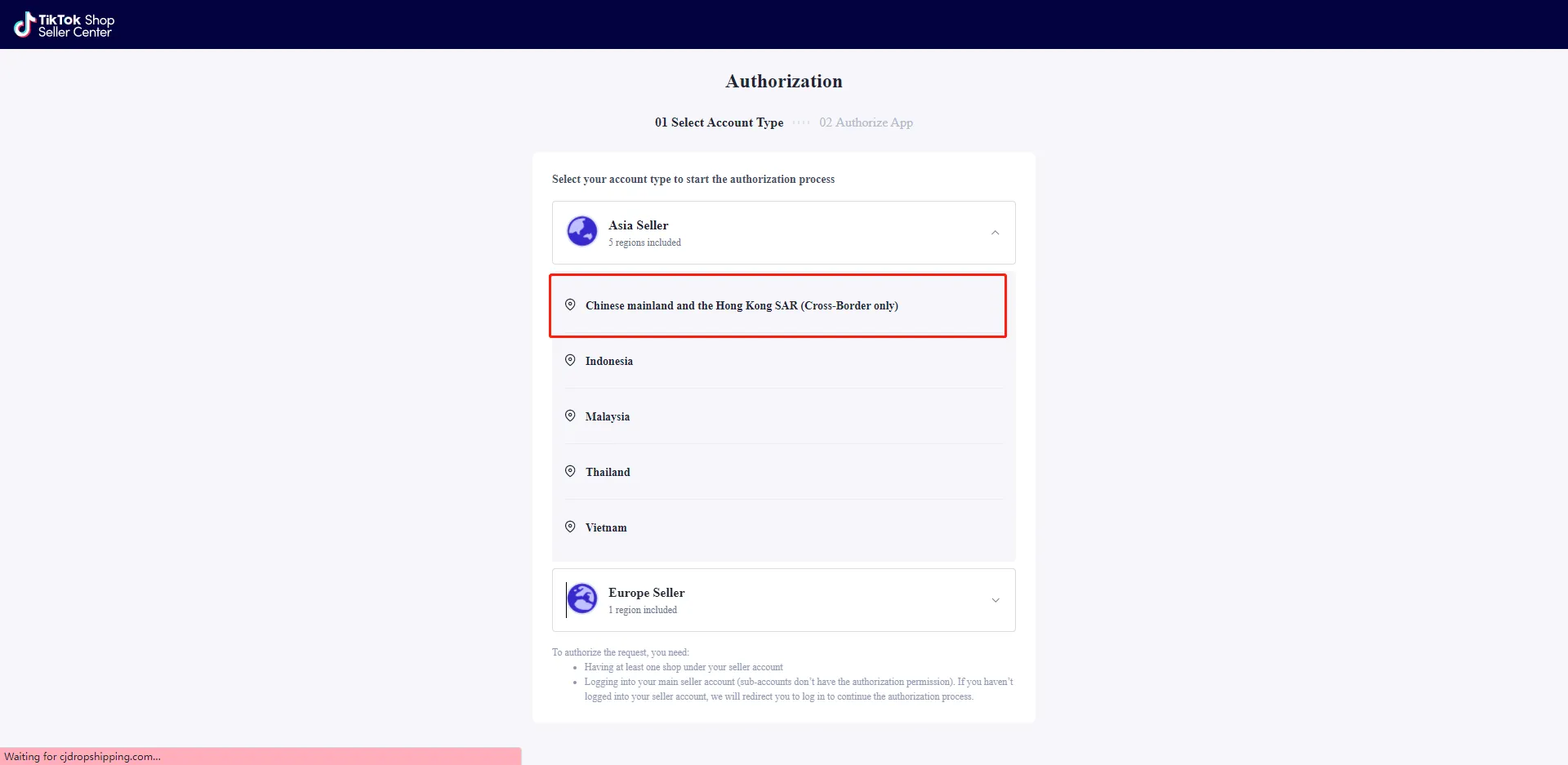 Special note: Please select the Chinese mainland and the HK SAR in the account type option no matter where your business lies.