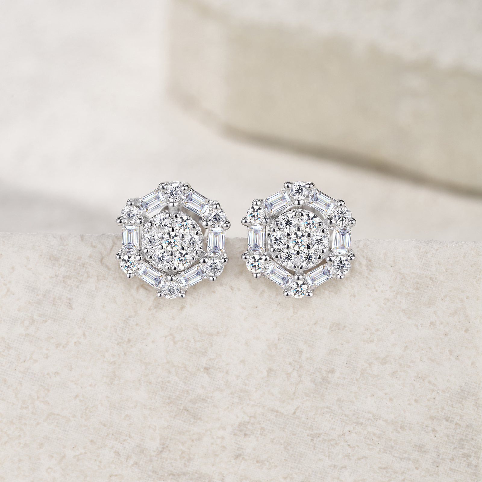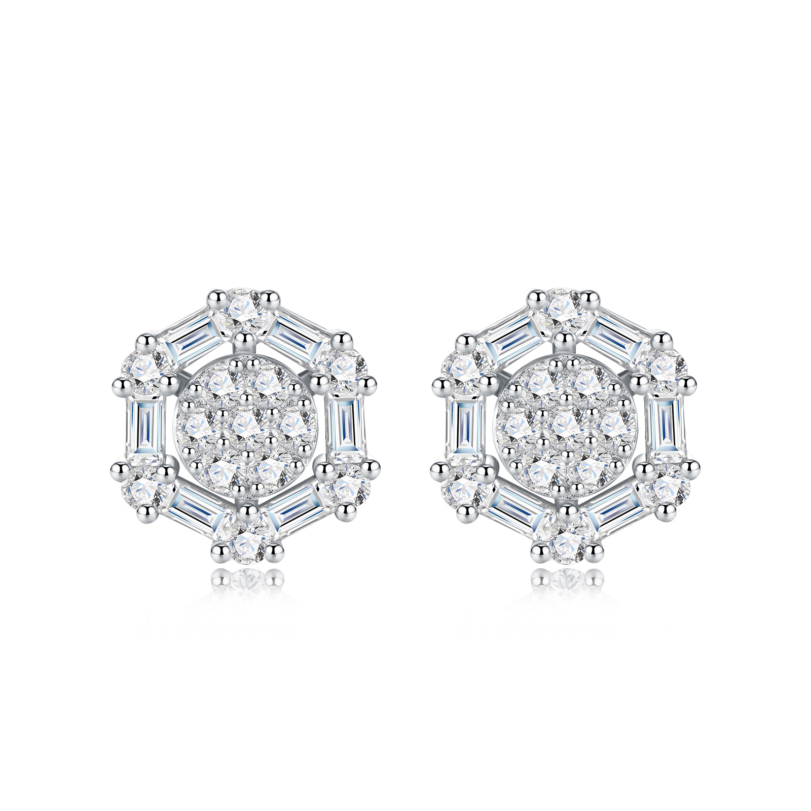 A Luxurious And Fashionable Minimalist Jewelry Earring Set Featuring Top-quality Moissanite Stones, Made Of S925 Silver Electroplated With Platinum.