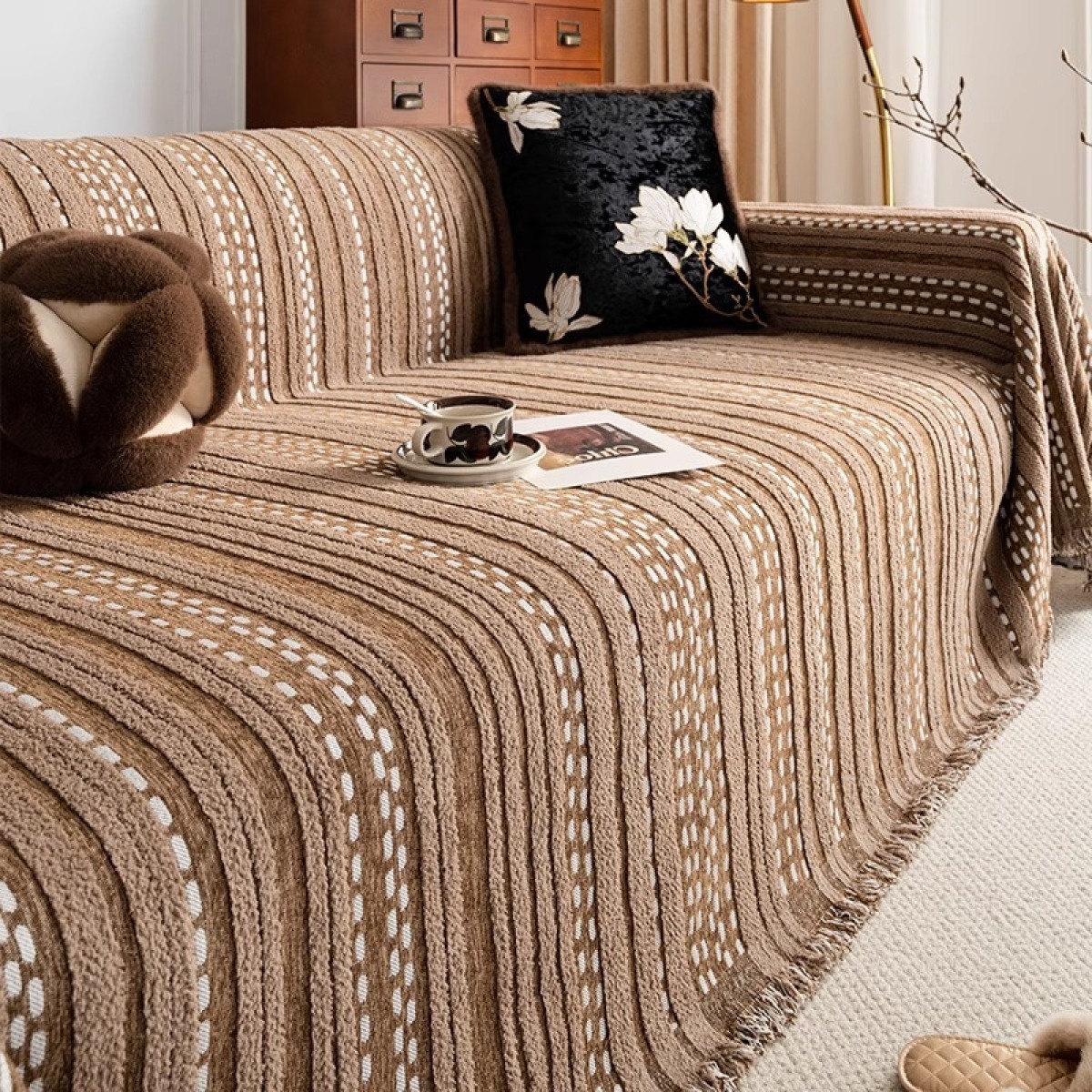 Color: linear (towel)-Brown, linear (towel)-Black, linear (towel)-Gray