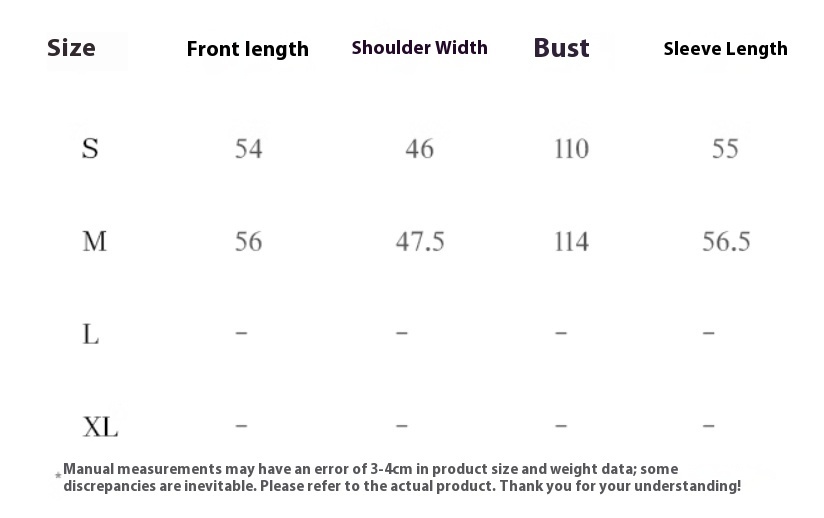 Note:1. Asian sizes are 1 to 2 sizes smaller than European and American people. Choose the larger size if your size between two sizes. Please allow 2-3cm differences due to manual measurement. 2. Please check the size chart carefully before you buy the item, if you don't know how to choose size, please contact our customer service. 3.As you know, the different computers display colors differently, the color of the actual item may vary slightly from the following images.