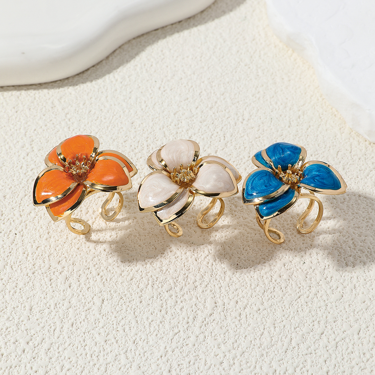 Single Piece Alloy Enamel Flower Ring, Exaggerated Floral Design Open Ring For Women, Trendy Party Jewelry